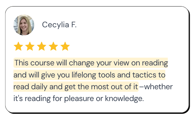 You’ll enjoy the course and become a better reader OR you’ll try it out, it won’t be a fit, and you’ll get your money back.